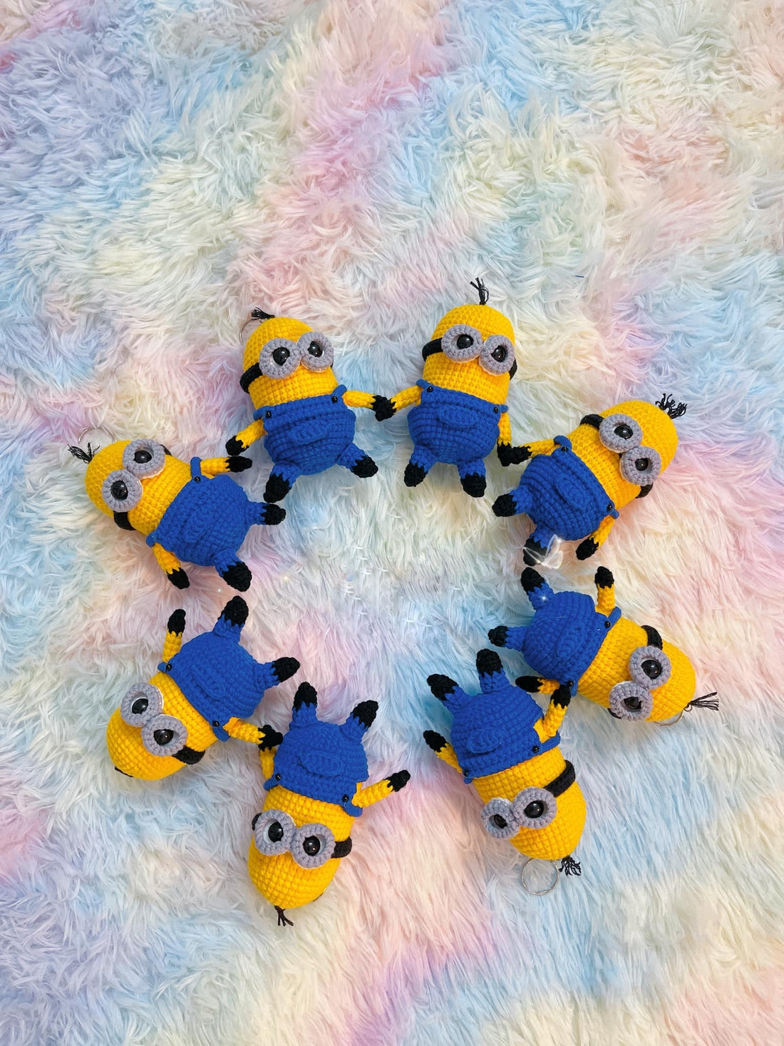 Handmade Crochet Minion Keychains, Cute Crochet Character Charms, Unique Crochet Gift, Kawaii Crochet Accessories, Artisan Crochet Keychains
