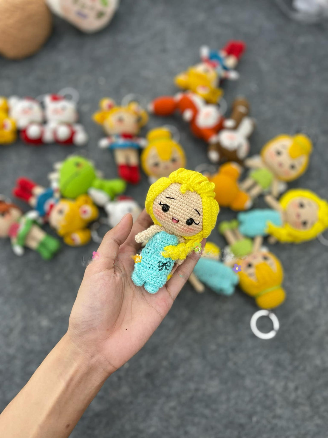 Handmade Crochet Elsa Keychain, Cute Crochet Character Charm, Unique Crochet Gift, Kawaii Crochet Accessory, Artisan Crochet Keychain