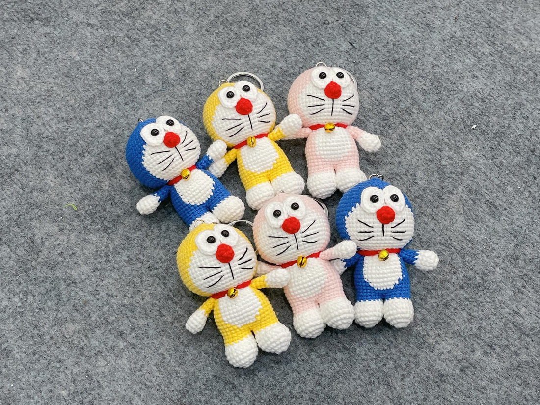 Handmade Crochet Doraemon Keychains, Cute Crochet Character Charms, Unique Crochet Gift, Kawaii Crochet Accessories, Artisan Crochet Keychains
