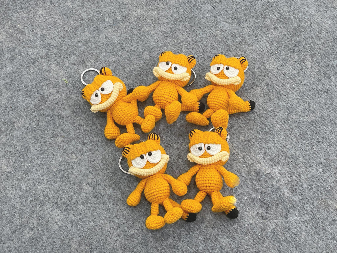 Handmade Crochet Garfield Keychains, Cute Crochet Animal Charms, Unique Crochet Gift, Kawaii Crochet Accessories, Artisan Crochet Keychains