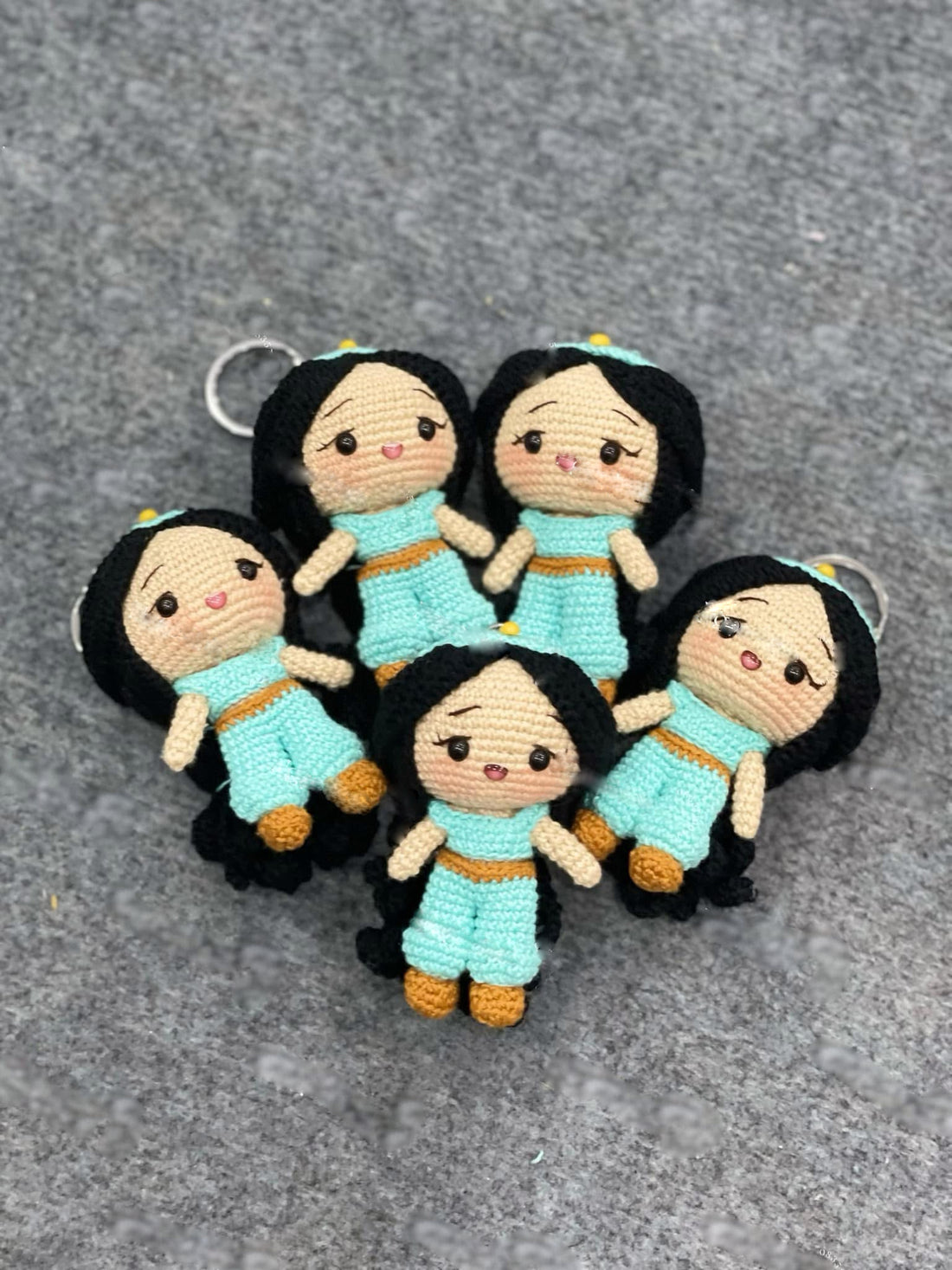 Handmade Crochet Jasmine Keychains, Cute Crochet Princess Charms, Unique Crochet Gift, Kawaii Crochet Accessories, Artisan Crochet Keychains