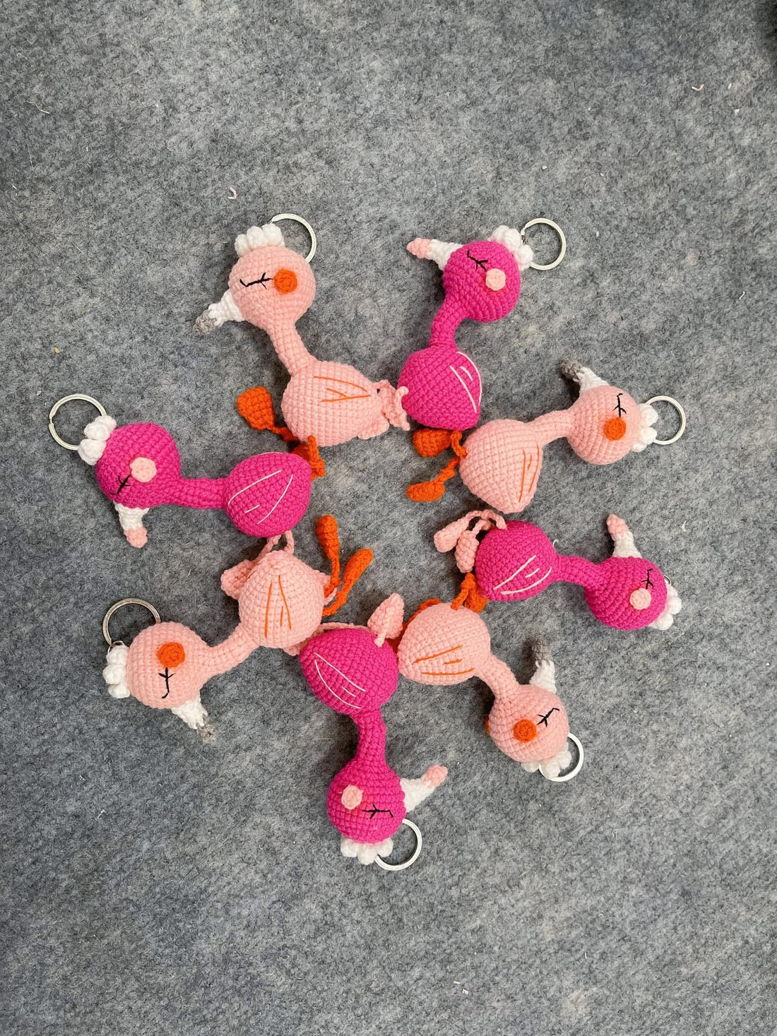 Handmade Crochet Flamingo Keychains, Cute Crochet Animal Charms, Unique Crochet Gift, Kawaii Crochet Accessories, Artisan Crochet Keychains
