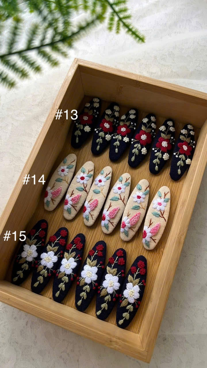 This handcrafted embroidered hair clip features delicate floral details designed for modern retail collections.