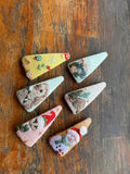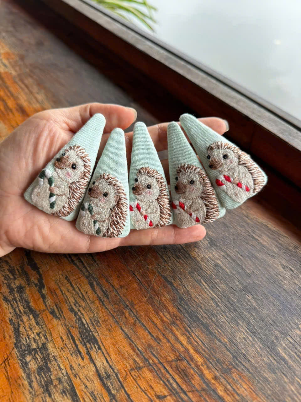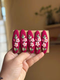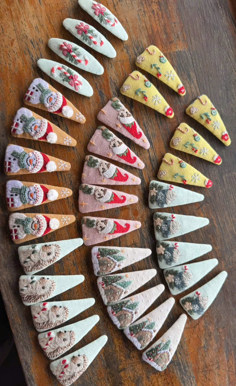 This handcrafted embroidered hair clip features delicate floral details designed for modern retail collections.